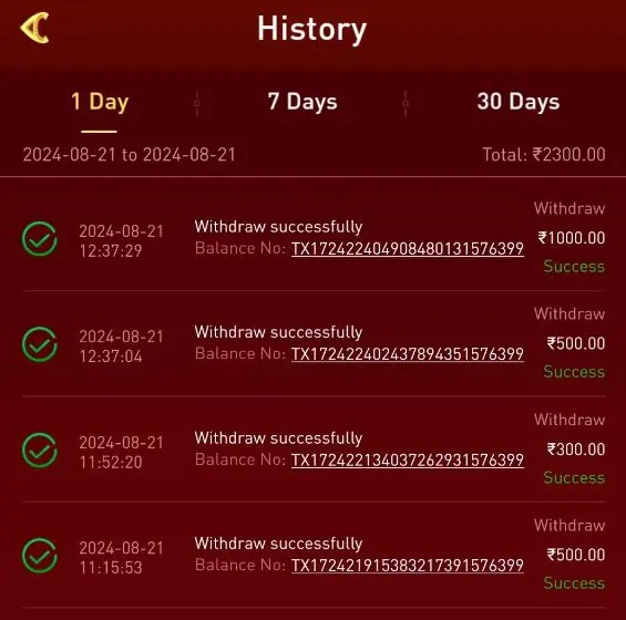 अभी तक मैंने 01 GAME RUMMY ऐप से 500 से भी अधिक रुपये विथड्रावल कर लिया हूँ. सुरुआत में तो यह ऐप तुरंत (1 मिनट के भीतर) WITHDRAWAL का पैसा बैंक अकाउंट में भेज दे रहा है