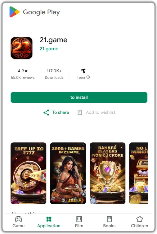 21 GAME APP डाउनलोड करने के बाद इसे इनस्टॉल कीजिये और नया अकाउंट बना कर 37 रुपये का बोनस प्राप्त कीजिये.